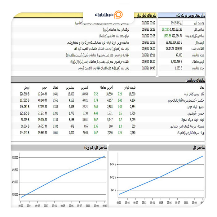 معاملات امروز بازار سرمایه با روند صعودی آغاز شد و البته شکست احتمالی این سطح عاملی برای برگشت کلیت بازار به روند صعودی میانمدتی خواهد بود. همچنین با توجه به رقابت دلار نیمایی برای رسیدن به کانال 30 هزار تومانی، گذر شاخص از مقاومت کوتاه مدتی محتمل خواهد بود. شاخص کل با افزایش 8 هزار و 942 واحدی در 15 دقیقه ابتدایی معاملات، به یک میلیون و 418 هزار و 297 واحد رسید.
